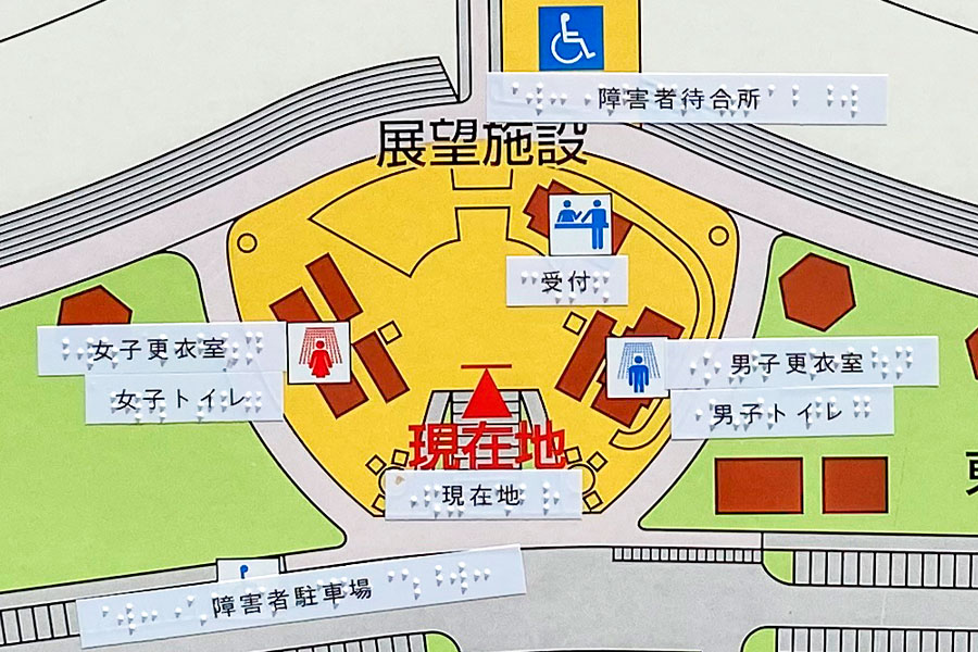 施設案内板などに点字加工を行っています。受付にも点字資料を常備しています。