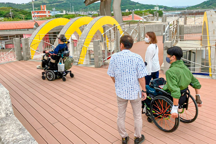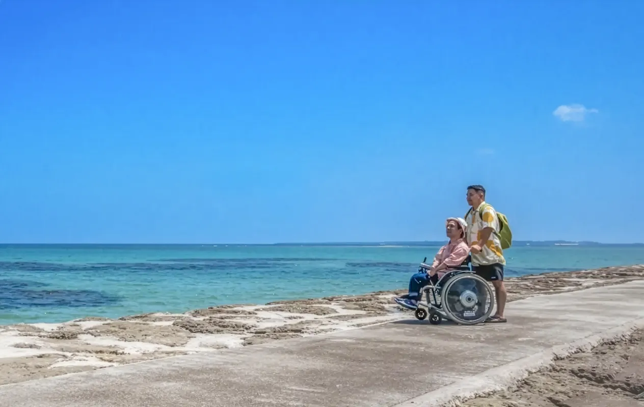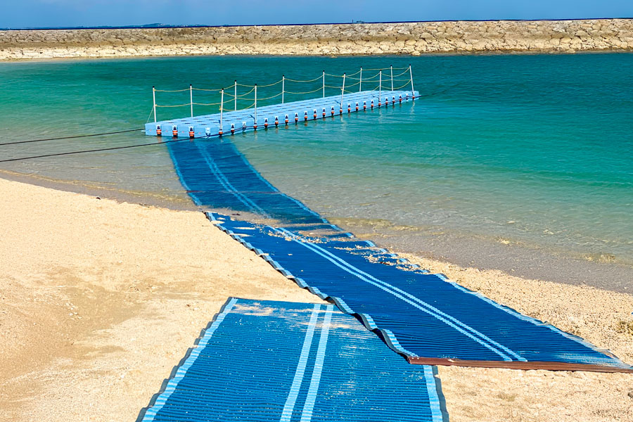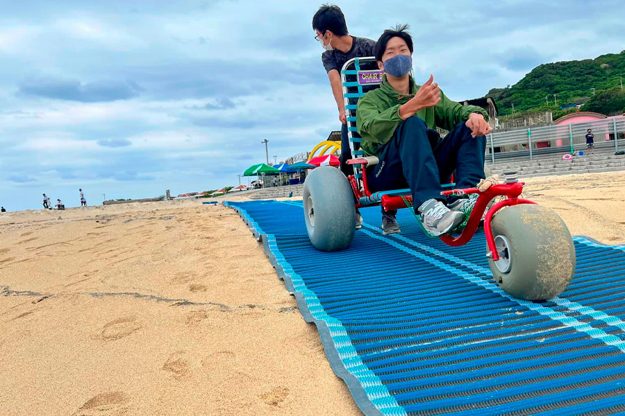沖縄県のビーチでは、誰もが海やマリンアクティビティを楽しめるよう、ハード・ソフトの両面から取り組みを推進しています。一例として、あざまサンサンビーチのユニバーサルデザインのポイントをご紹介します。